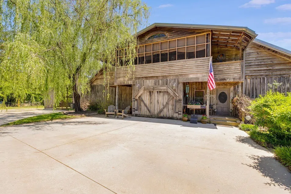 Limitless options with stunning vistas of the 640-acre Lake Seaton! This exceptional 4-bedroom, 3A3/4-bathroom lakeside residence rests on 2+ acres of uninterrupted waterfront property. Crafted using oak, hickory, pine, walnut, and cedar sourced from the lakebed before it filled, this home boasts unique charm. As you walk in the front door, head upstairs to the open main living area to discover a remarkable vaulted, beamed ceiling and 5" plank hardwood floors. Enjoy the play of natural light and panoramic lake views from the screened veranda. The spacious upstairs encompasses a grand great room, complete with a built-in dual workstation office space. The main kitchen is designed for hosting, featuring a vast island with antique barstools, a breakfast bar, dual sinks and dishwasher, abundant pantry storage, and Maytag and Jenn Aire appliances. An en-suite powder room is also just steps away. The upstairs owner's suite features a sizable bedroom, expansive dual walk-in closets, a lavish en-suite bath, and a screened sleeping porch. Downstairs on the main level, you'll find two distinct living areas. The first offers 2 bedrooms, a bathroom, a full kitchen, laundry, and exterior access, ideal for Airbnb. The second serves as a family/game room with a kitchenette, full bath, and bedroom. This space leads to a covered patio, overseeing the saltwater pool and lush surroundings. For added space, there's an attached workshop and covered RV parking, plus a detached garage/storage building. Animal enthusiasts will appreciate the fenced yard and field that can be utilized for farm animals. Something for everyone!