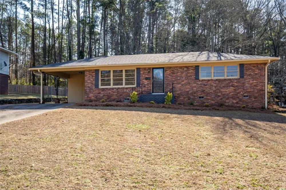 This updated 3 bedroom 2 bath home delivers the improvements buyers want most. New roof. New HVAC. New flooring. Fresh paint throughout. The heavy lifting is complete so you can move in with confidence. As you enter, you are welcomed by a spacious living room that flows naturally into the breakfast area and kitchen, creating an open and functional layout ideal for everyday living. The split bedroom design provides privacy, with two oversized guest bedrooms positioned on the opposite side of the home from the primary suite. Both secondary bedrooms feature walk in closets and share their own full guest bathroom. The primary suite offers direct access to a large covered back porch, creating a private retreat feel. The en suite bathroom connects to a walk in closet for practical, well designed storage. Step outside and you will find a generously sized backyard that backs up to wooded acreage. No rear neighbors. Just peaceful views and wildlife to enjoy from your covered porch.
