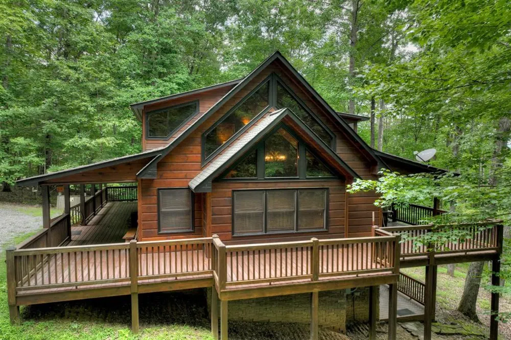 With panoramic mountain and canopy views, an open floor plan w/ rustic finishes and modern touches, soaring cathedral ceilings, wraparound decks, and a private location, there's no question behind the name "Freedom Overlook!" Complete with three large ensuites, fully furnished and turn-key, full two car garage and storage, and walls of glass. On the exterior main level, guests will find themselves enjoying the large party porch with stacked stone F/P. On the terrace level, find a full den space and game area as well as an additional outdoor deck with spa and jacuzzi area. Kitchen and bathrooms have been updated with granite countertops and feel luxurious for this rustic mountain retreat. Minutes to both Lake Blue Ridge and Downtown Blue Ridge, this rustic charmer would make for a perfect full-time or second home!