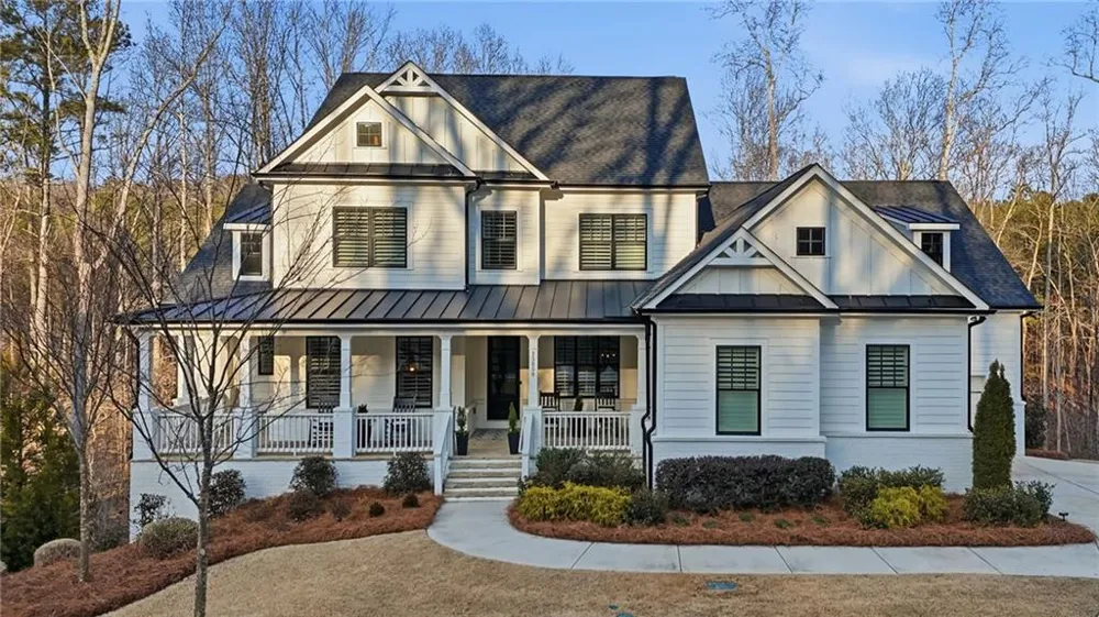 Privately set at the end of a quiet street, this exceptional Milton Run residence offers a rare blend of luxury, privacy, and convenience. Built in 2022 and impeccably maintained, this like-new home sits on 1.77 wooded acres, creating a peaceful, retreat-like setting just minutes from Milton’s shops, dining, and top-rated schools. A wraparound front porch welcomes you into a thoughtfully designed interior with hardwood floors throughout and refined finishes at every turn. The main level features a private office with its own exterior access to the front porch, ideal for working from home, along with a formal dining room highlighted by elegant board-and-batten detailing. The primary suite on the main level is a true sanctuary, showcasing a wood accent wall with beams, a walk-in closet, and a spa-inspired bath with dual vanities, a soaking tub, and an oversized shower with multiple shower heads. Designed for both everyday living and entertaining, the fireside living room flows seamlessly into the chef’s kitchen, which offers abundant cabinetry, a large island, stainless steel appliances, and a walk-in pantry. Adjacent to the kitchen, a cozy sitting room with its own fireplace provides an inviting additional living space. Step outside to enjoy two decks, including a covered deck with ceiling fans, perfectly positioned to take in the home’s private, wooded surroundings. A well-appointed mudroom and laundry room with extensive cabinetry and a utility sink complete the main level. Upstairs, a versatile lounge area with a shiplap accent wall anchors three additional bedrooms—one ensuite and two sharing a full bath. The full, unfinished basement offers exceptional potential for future expansion or customization. Additional highlights include a three-car garage with an expanded driveway and multiple outdoor living spaces that enhance the home’s serene, quiet setting. Move-in ready and thoughtfully designed, this Milton Run retreat delivers refined living, exceptional privacy, and modern comfort in one of Milton’s most desirable locations.