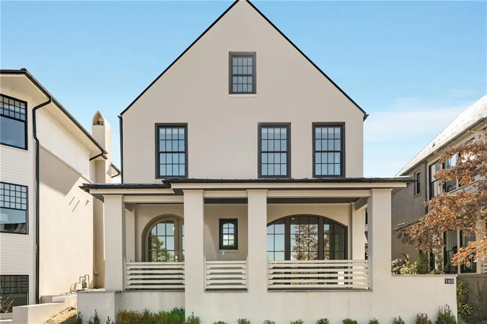 Coveted location at Trilith, right across from the community park and half a block from the pool! Designed after the idyllic town of Seaside, Florida, this 4 bedroom/ 3 bathroom home accommodates a creative and modern lifestyle. Step inside and you’ll be charmed by the arched doorway, abundance of windows, wall-to-wall hardwood floors, and lofty 10'+ ceilings that create an airy atmosphere. The open-concept layout features a gourmet kitchen equipped with upgraded appliances, soaring cabinets for extra storage, and an expansive breakfast bar. The adjacent dining area flows seamlessly into the inviting living space, highlighted by a cozy fireplace and expansive windows that frame views of the serene courtyard. A private guest bedroom with a full bathroom, located just off the foyer, can double as a home office. Venturing to the upper level, you'll discover the luxurious primary suite, complete with a spacious walk-in closet, french doors opening to the balcony offering you a picturesque view of the courtyard and an ensuite bathroom with dual vanities, a soaking tub and a glass-enclosed shower. There are also two well-appointed bedrooms with a stylish shared bathroom as well as a convenient laundry area. Outside, a detached two-car garage with storage is accessible from the courtyard, offering convenience and functionality. The covered front porch overlooks the community park, featuring amenities such as a playground, tennis and basketball courts, and an outdoor grilling station. What’s more? Residents also enjoy 15 miles of walking trails, with the town center just two-blocks away with several shopping and dining options.
