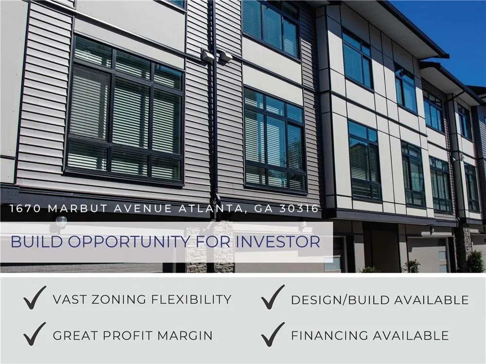 Endless Possibilities for Investor to Build and make Huge Profits... 6 Unit Townhome up to 12,000 sq ft ( Floor plan of 6 townhomes available upon request), Office Bldg, Two Single Family Homes, Brewery, Yoga Studio, Daycare, Storage Facility, etc. Current Zoning OI (Industrial Lot). 5 story building apartment, concept plan available. Prime Location - End of Street Cul-De-Sac, Walking distance to East Atlanta Village and Kirkwood! We can provide turnkey Design/Build/Architect if Needed. Nearby Townhomes are Selling 700-800k. Call Eduardo Rognoni for more info on the project. For details about this district Link to O-I Zoning : https://library.municode.com/ga/atlanta/codes/code_of_ordinances? nodeId=PTIIICOORANDECO_PT16ZO_CH10OFSTDIRE
