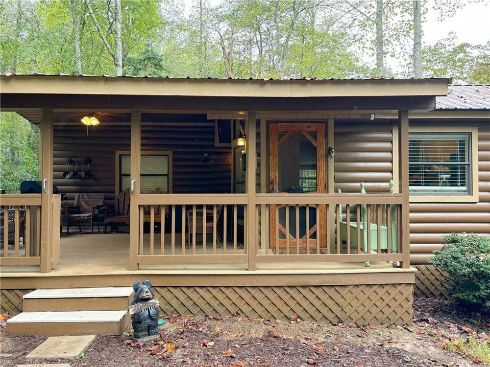 Immerse yourself in the peaceful, mountain lifestyle at this cozy cabin retreat in Hiawassee Mountain Village. Your days begin with the sound of a bubbling creek outside your window, setting the tone for an idyllic escape. Start your morning on the spacious covered front porch, sipping coffee and taking in the lush, green surroundings. For outdoor enthusiasts, the location is perfect just 15 minutes from Lake Chatuge for kayaking, paddle boarding, or a lakeside picnic. The nearby walking paths and picnic tables within the community offer leisurely afternoon strolls, while evenings are made for soaking in the hot tub under the stars. If you're feeling adventurous, explore the charming nearby towns of Helen and Young Harris, or head to downtown Hiawassee for local dining and boutique shopping. The convenience of being just two hours from Atlanta means this tranquil escape is still within reach of the city's vibrant energy, yet feels like a world away. Whether you're working remotely from the comfort of the converted she-shed/man-cave or taking time to unwind by the fire pit, this fully furnished retreat has everything you need to embrace the simple, rejuvenating pleasures of mountain living!