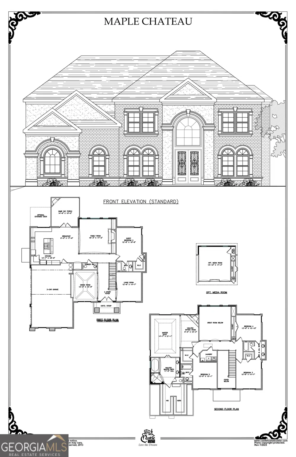 This impressive residence boasts five bedrooms, four and a half bathrooms, and a convenient guest suite on the main level. The exterior is fashioned from elegant three-side brick with designer accents, complemented by a spacious three-car side entry garage. Upon entering the home, you'll be greeted by a grand foyer with two stories and a catwalk offering breathtaking views of the living room below. The vaulted family room features a cozy fireplace and built-in bookshelves, while the dining room offers a trey ceiling, adding to the home's sophistication. The kitchen boasts stainless steel appliances, granite countertops, a work island with a raised breakfast bar, and a stylish backsplash incorporating stone and accent pieces. Moving upstairs, the master bedroom is a peaceful retreat with a trey ceiling, a sitting area complete with a fireplace, and an expansive walk-in closet. The master bathroom is equally impressive, with a double vanity, jetted tub, and a separate enclosed custom tiled shower. Additional highlights include a media room, a kitchen desk, a curved staircase, a basement, and a comprehensive technology package. STOCK IMAGES