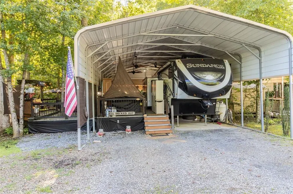 Welcome to your dream mountain getaway situated on an extra-large lot, providing ample space and privacy. This permanent home base for your RV comes with a 2018 Heartland Sundance 5th wheel. This 34-foot RV boasts 3 slideouts, ensuring a spacious retreat for you and your loved ones. Imagine the joy of making family memories while toasting marshmallows around the cozy fire pit, embarking on boating adventures at Carter's Lake, exploring picturesque nature trails, or engaging in friendly games of tennis or basketball. Take a refreshing dip in the community pool, or simply relax on the huge deck that features multiple outdoor living spaces, perfect for any gathering! Beyond the expansive decks is an outdoor cookhouse complete with upgraded electrical, ensuring you have everything you need to cook up a storm in the great outdoors. The lot also backs up to a private wooded area, offering a serene and secluded setting. This sought-after location places you just 3 miles away from Carter's Lake Marina, and it's conveniently situated about an hour north of Metro Atlanta. The comprehensive HOA covers essential services like water and sewer, as well as maintenance of common areas. In addition, you'll enjoy fantastic amenities such as the pool, basketball courts, tennis courts, and a recreational building complete with an exercise room and bathhouse. With the active HOA regularly organizing family-friendly events, there's always something thrilling around the corner. Don't miss out on this unique opportunity at Talking Rock Creek RV Resort. Your dreams of a mountain getaway and a luxurious RV home can become a reality. Start making memories that will last a lifetime—contact us today!