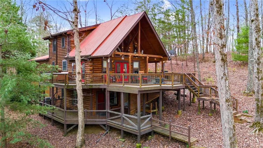 Not many homes near Carters Lake come on the market, and this one is a real winner. This is a completely private, well-built, true log cabin on 3.12 acres. It borders the Carters Lake Wildlife Management Area (6,000 acres), and is just a short walk to the shores of Carters Lake. Boaters can bring their boats to park in the extra driveway space, then launch at the Woodring Branch boat launch just 2.4 miles away. This is an ideal location for boating, fishing, lake activities, camping, hiking, or mountain biking. There's something here for everyone. Sold turn-key, so bring your tooth brush, or start renting it to travelers. A thoughtful layout places a bedroom and full bath on each level so everyone can spread out, and have their own privacy. A large bunk room and an additional daybed on terrace level add significant sleeping capacity to the other 3 bedrooms without compromising comfort. For indoor days, the terrace level provides an arcade game (over 10,000 games), a foosball table, a connect four game, a play station, books, tv entertainment, and an electric fireplace with rocks that change colors. Two levels of massive decks provide multiple entertainment options and space for enjoying the mountain views and sounds of nature. The terrace level also walks out to its own deck. Relax in the hot tub amidst the trees, or warm your toes by the deck-top fire pit for a star-gazing evening. Motorcyclists will appreciate the paved roads to the cabin, the paved driveway with extra parking, and the oversized garage. Access is much easier here than at the average cabin with just one step up into the house from the driveway level. Ellijay restaurants and shopping are just a short scenic drive away. 2020 rental revenues grossed $37,000. It has not been a full time rental since then. Grab your toothbrush, and c'mon up! The mountains are CALLING!