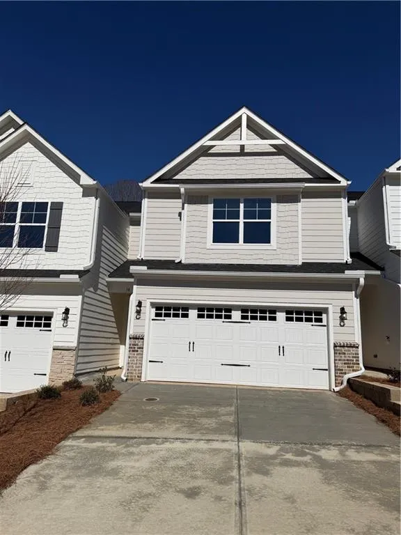 The new construction Southampton plan at 28 Trace Bluff in the highly sought after Villas at Dawasonville Community in Dawsonville, GA is a two-story townhome plan featuring 3 bedrooms and 2.5 bathrooms in 2060 square feet along with a 2-car garage. As you step off the front porch, a long foyer welcomes you and leads into the open-concept main living area. A large family room with a modern fireplace and nicely appointed Cedar Mantel, and also the beautiful Ship Lap Wall is the perfect place for family and friends to gather or for a quiet night with a book or movie. The family room flows seamlessly into the well-appointed kitchen with a large center island, quartz countertops, white subway tile backsplash, Light Gray shaker-style cabinets, and stainless-steel appliances. A dining area directly off the kitchen provides space for a dining table and opens onto the back patio, complete with aprivacy fence on each side.There is also a half bathroom tucked away on the first floor. Up the stairs you'll turn from the large loft into the primary suite. A spacious bedroom is complimented by the en suite bathroom featuring a walk -in shower, dual vanity, water closet, linen closet, and a roomy walk-in closet. Across the loft you'll be led into 2 secondary bedrooms, the laundry room, and an additional bathroom, also with dual vanity, rounding out the upper floor. Just minutes from Downtown Dawsonville and also Rock Creek Sports Complex residents can enjoy endless opportunities for outdoor recreation. With plenty of dining options, shopping centers, and everyday conveniences nearby, Villas at Dawsonville offers a perfect balance of comfort and accessibility so call to make 28 Trace Bluff Community in Dawsonville, GA your new home today! $6000 In Seller Paid Closing Costs with Sabal Mortgage. Ready March 2026. Buyers can receive up to $6,000 toward closing costs when using Sabal Mortgage.