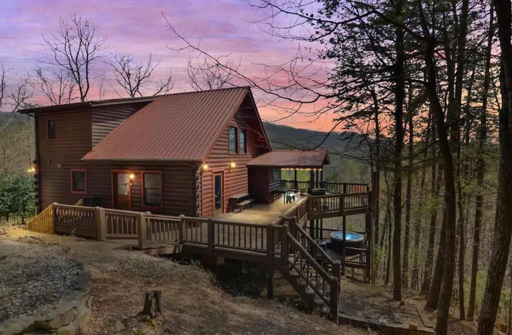 Perfect getaway with spectacular MOUNTAIN VIEWS! (Selling TURN KEYFurnished) This 4-bedroom, 3-bath cabin spans three levels of living. Experience mountain living at its finest in this inviting cabin nestled amidst the scenic wonders of North Georgia. From the moment you arrive, panoramic views of the Blue Ridge Mountains greet you through expansive windows, setting the stage for a memorable retreat. Relax in the large living room by the cozy gas fireplace or step outside onto the deck to enjoy the sights and sounds of nature. On the main level, the living room features oversized windows, cozy seating, a gas fireplace, and a game nook. The fully stocked kitchen comes with all essentials, including a coffee bar, and leads to the dining space and living room. Bedroom 1 is on this level offering a cozy queen-size bed, French doors to a private balcony with mountain views & ample storage. There is also a full bathroom with a tub/shower combo. The upper level boasts the master bedroom with a king-size bed, mountain views, an ensuite bathroom, and a walk-in closet. The lower level includes Bedroom 3 with a king-size bed, French doors to the lower-level deck, a Jack & Jill full bathroom. Bedroom 4 serves as a kids' bedroom and game room with a twin over full bunk bed and an air hockey table, and access to the back porch. The exterior features a wrap-around main-level deck with covered and uncovered portions, rocking chairs, outdoor dining, a gas grill, and a stacked stone outdoor wood-burning firepit. The lower-level deck includes a hot tub with great mountain views. High-speed WiFi ensures you can stay connected if work calls, all smart TV's, and good cell service is a rare find in the mountains. Enjoy easy access to local attractions and amenities, with just a short drive from downtown Blue Ridge and Ellijay.(Long list of recent improvements)