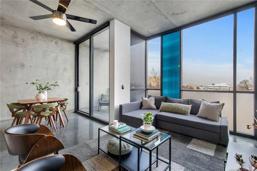 Welcome home to your urban sanctuary! This bright and stylish 1 bedroom, 1 bathroom concrete loft at Old Fourth Ward’s iconic Tribute Lofts features an open floor plan with soaring ceilings, polished concrete floors, and floor to ceiling windows. The space is filled with natural light and peaceful treetop/city views. The kitchen flows seamlessly into the living area and offers stainless steel appliances, a large breakfast bar, and plentiful storage. Enjoy a private balcony, ideal for morning coffee or evening unwinding. The bedroom includes a custom built-in closet system and a beautifully renovated bathroom. Tribute Lofts offers resort style amenities including a rooftop pool that converts to a hot tub in the cooler months, full gym, modern clubhouse, grills, skyline views, gated parking, EV chargers, Google Fiber, dog wash, and bike storage. The ground floor offers a coffee shop, brand new restaurant, art gallery, and hair salon. Located directly on the Freedom Parkway Trail and just steps from the BeltLine, Krog Street Market, Inman Park, and more!