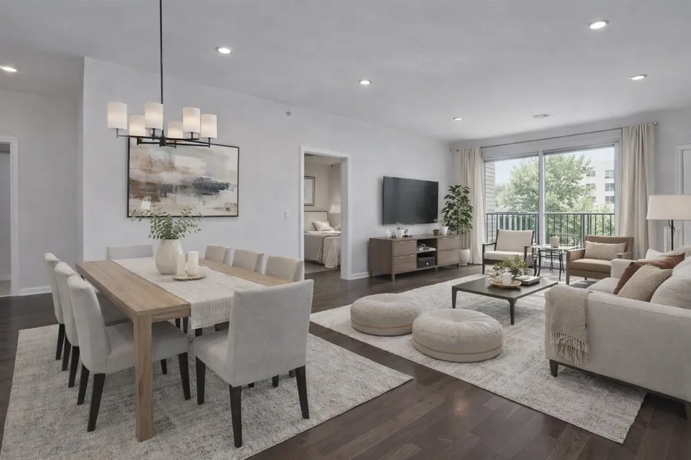 Sunny and oversized newer construction 2-bedroom, 2-full bath residence featuring an open floor plan, high-end finishes, stainless steel appliances, hardwood floors, and a private balcony. Washer/Dryer in unit. Conveniently located near shopping, dining, and transportation options. Pets permitted, subject to landlord approval and for an additional fee. Parking available for an additional fee. Some photos are virtually staged and may represent a similar unit.