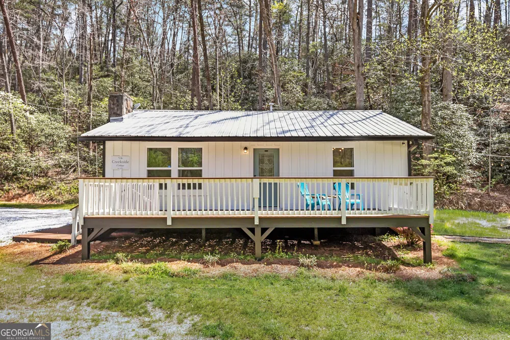 This enchanting 2-bedroom, 1-bathroom fully furnished Creek Side Cottage is a mix of rustic, modern, and farmhouse and has been completely renovated in 2022, blending modern comforts with classic charm. Nestled on a picturesque 1-acre lot, in between downtown Helen, Ga and Unicoi Sate Park this property offers serene countryside living with the convenience of contemporary amenities. The living space boasts stylish finishes and abundant natural light, creating a warm and inviting atmosphere. The modern kitchen features top-of-the-line appliances. Both bedrooms are beautifully appointed, providing cozy retreats for relaxation. The updated bathroom showcases elegant fixtures and a spa-like feel. Step outside to discover your private oasis. The expansive yard is a nature lover's paradise! In addition to the amazing spaces inside you will find a large deck and path to a 6-person hot tub in a purpose-built gazebo. Additionally, the property offers a picturesque mountain stream that can be heard from anywhere on the property. This home is currently zoned STR with White county and can be sold Fully Furnished for those buyers looking for a turn-key, stable & proven investment property!