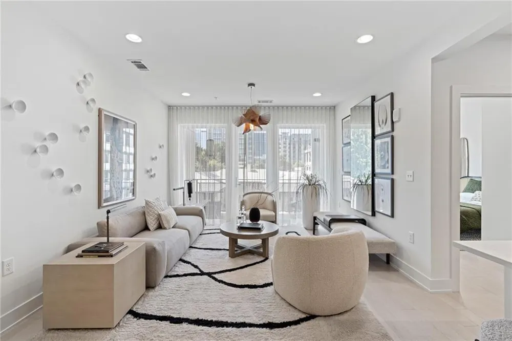Welcome to your new home at J5, new luxury condominiums in the heart of Midtown! J5 offers ultimate Intown living: quality construction, convenient location, unmatched service, and luxurious amenities. This 2-bedroom, 2-bathroom home features an open-concept living and dining area, Midtown skyline views, and abundant natural light. This home is beautifully designed to maximize its space and boasts 2 complete bedroom suites. The primary suite has an attached private balcony, the perfect way to greet the day with your morning coffee or unwind while overlooking the picturesque Midtown skyline. Both bedroom suites have a sizeable walk-in closet, dual-sink vanities, integrated light mirrors, contrasting cabinetry with full overlay flat panel doors, and soft close features. State-of-the-art finishes continue throughout the home with wide plank hardwood flooring, KitchenAid appliance packages with gas cooking, and quartz countertops. Unwind on one of your balconies or head down to one of two clubrooms for fireside chats with neighbors. Soak up the sun next to the saltwater pool, or head over to the garden deck to pick fresh herbs for your home-cooked meal in your chef-inspired kitchen. Luxury conveniences continue with a 24-hour concierge, state-of-the-art fitness center, pet spa, and an open-air rooftop lounge!