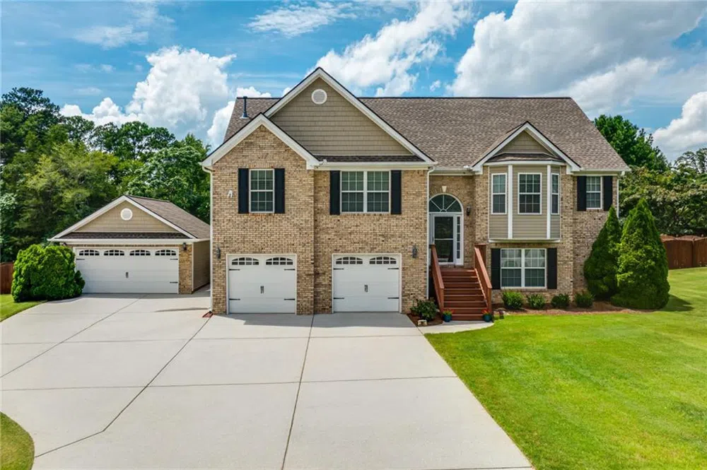 TWO HOMES IN ONE! Don't miss this amazing opportunity to own a home with individual space for in-laws, teen suite, or mom and dad! This beautiful brick front home offers private entrance and parking for the lower level for complete separate living. Quaint kitchen w/ full size refrigerator, built-in microwave & electric oven/range combo on lower level for complete independence. Full size bathroom with a new toilet, tub/shower combo provides access to the bedroom, along with a large den area and additional oversized, flex space/ bonus room and under stair storage complete the lower level. Off the split foyer, there are extra wide stairs to the upstairs great room with a masonry gas fireplace, which has never been lit. Open concept to a large 12+ person dining room for all your entertaining needs. Adorable kitchen with new stainless-steel appliances all electric with warranties, there is a gas hook-up available if that is your preference. Kitchen bar, breakfast area and pantry complete the kitchen and a large laundry room is off the kitchen. Huge primary suite with sitting area and large ensuite bath w/ dual vanity & separate tub/shower. Two more secondary bedrooms and a full bath, complete the upstairs. Separate DETACHED 2- CAR GARAGE and poured parking pad, offer ample storage along with a heated and cooled utility room. HVAC systems are both less than 5 years old with warranties. Roof was replaced in 2017 and has 10 year transferable warranty. Large private fenced-in backyard, on a corner lot, with additional poured concrete for a huge patio to host all your gathering. Landscaped front and backyard, and very private from the neighbors. This house has been loved! Small HOA required.